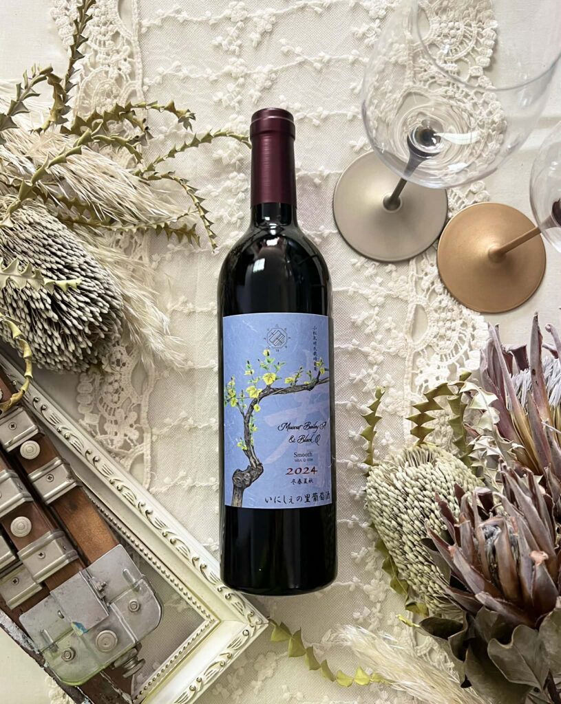 マスカットベーリーA:77%、ブラッククイーン:23%。古樽熟成12か月。